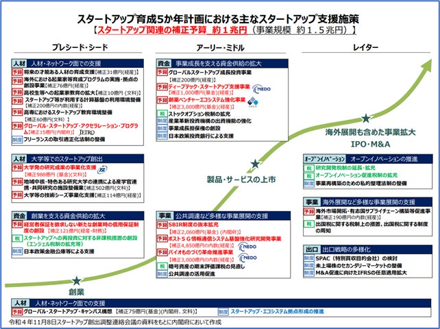 政府は2022年スタートアップ育成5か年計画を公表しました。この中でイノベーションの担い手として、ディープテックスタートアップの分野で世界的なユニコーンを創出する方向性が明確に打ち出されました。