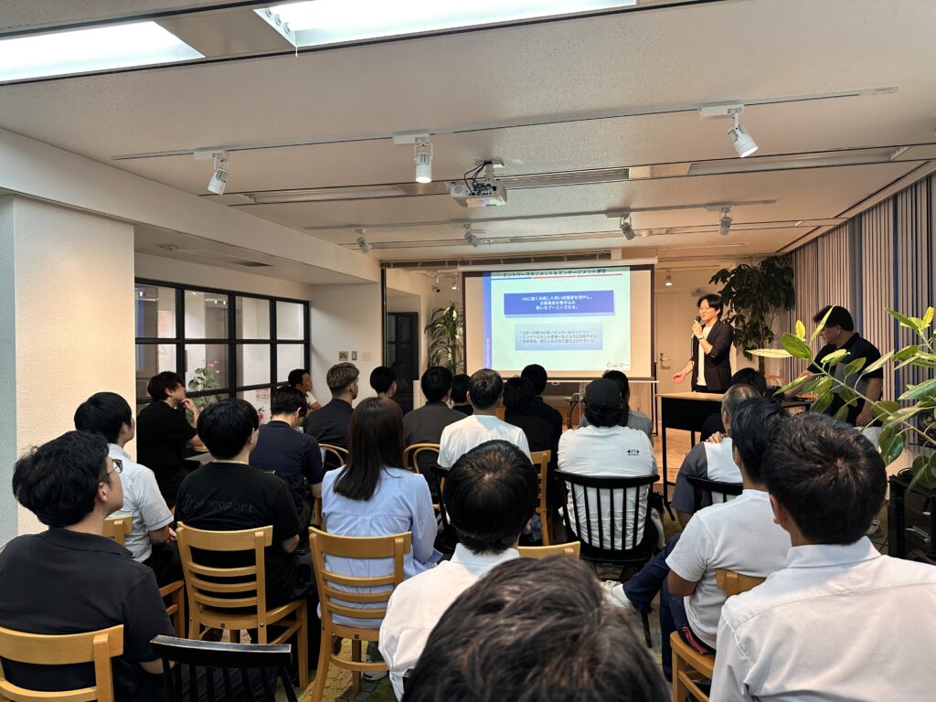 デジタルマーケティング領域で「ストーリーマーケティング」を展開。記事を通じて商品の理解を深め、ファン化を促す仕組みを紹介しました。過去には組織崩壊を経験しながらも理念を再構築し、会社を再成長させた実体験に、多くの参加者が共感しました。