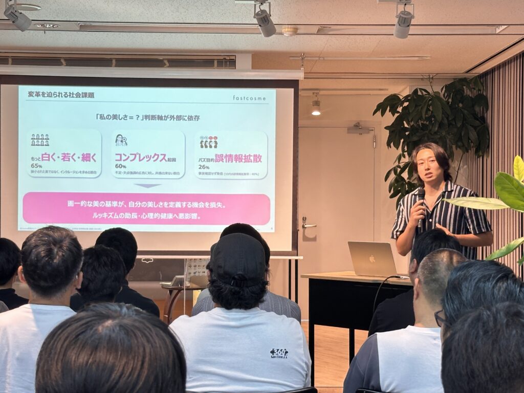 化粧品市場という巨大市場に仲間とともに事業の舟をこぎ出し、根底から業界をひっくり返していこうという意気込みを感じる熱量の高いピッチが行われました。