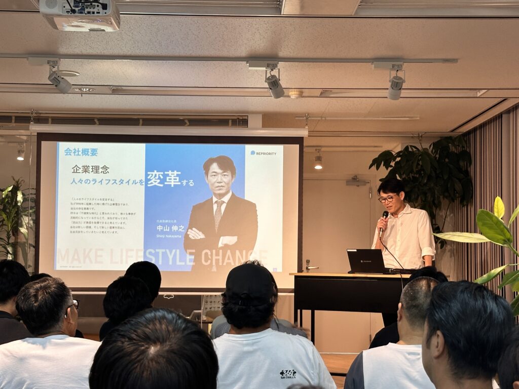 今月のメイン講師は、株式会社リプライオリティの中山社長。