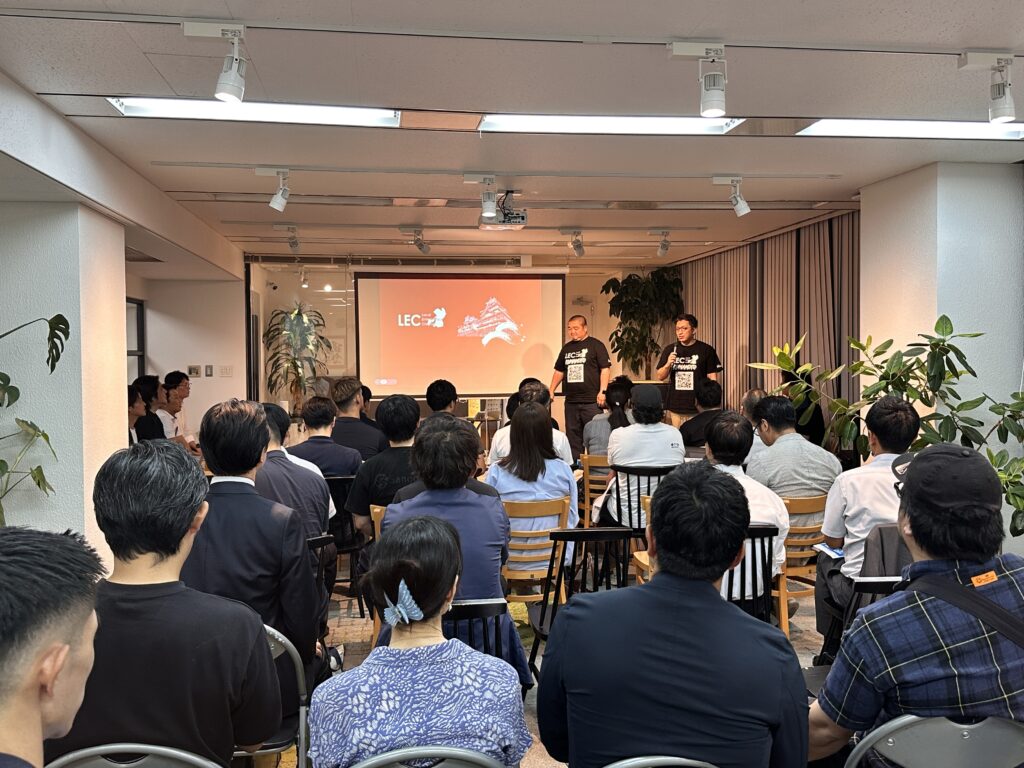 JETRO千葉から木村さんが登壇、海外展開支援プログラムの紹介。11月に開催するLEC熊本から実行委員長の鈴木健太さん(熊本電設株式会社)、岡村洸斗さん(株式会社熊本マーケティング研究所)挨拶をいただきました。