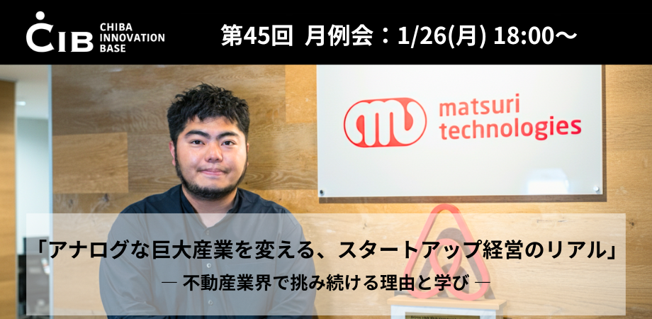 第45回】千葉イノベーションベース(CIB)月例会 – 講師 : matsuri technologies株式会社 代表取締役 吉田 圭汰氏